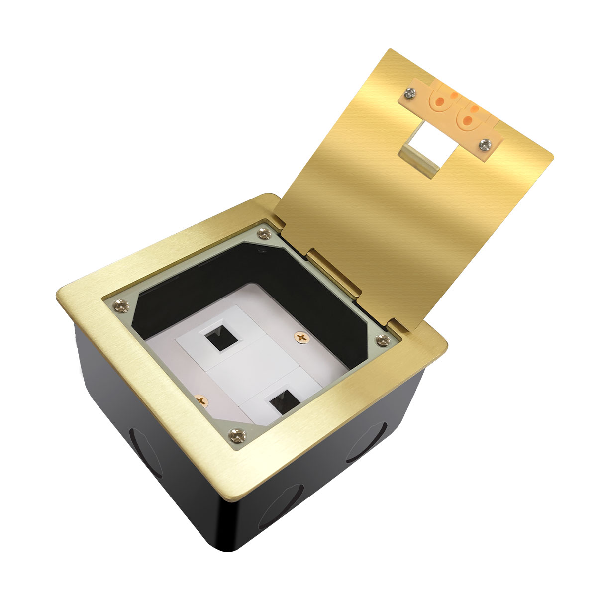掀蓋開(kāi)啟式帶出線孔銅地插銅地插帶出線孔可放86型面板的地板插座,可調(diào)整插口到蓋板的距離,從而實(shí)現(xiàn)插頭插上后蓋子能夠蓋平